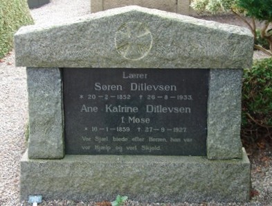 AO, KB-Vestervig, Opslag 50, side 220, nr. 2, Fødte Ane blev gift med Søren Ditlevsen. (Søren Ditlevsen blev født den 20 Feb. 1852 i Gunderup, Fleskum, Aalborg, døde den 26 Aug. 1933 i Snedsted, Hassing, Thisted og blev begravet den 31 Aug. 1933 i Snedsted, Hassing, Thisted.) |